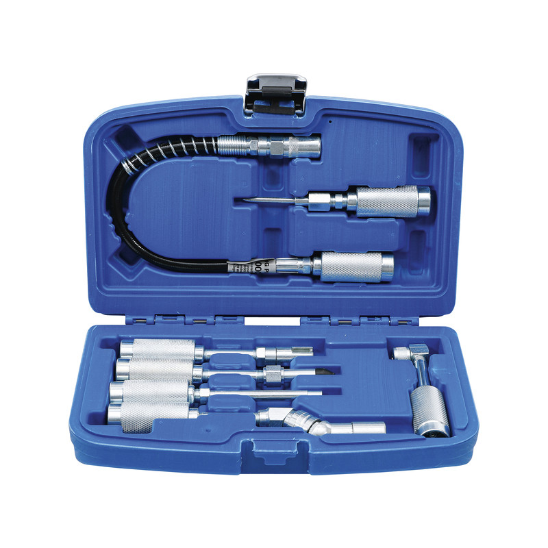 7 részes zsírzófej és tartozék készlet kék műanyag kofferben