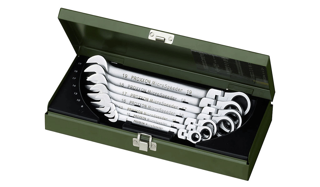 Csillag-villás racsnis-csuklós készlet 7r. 8-19 mm - Proxxon