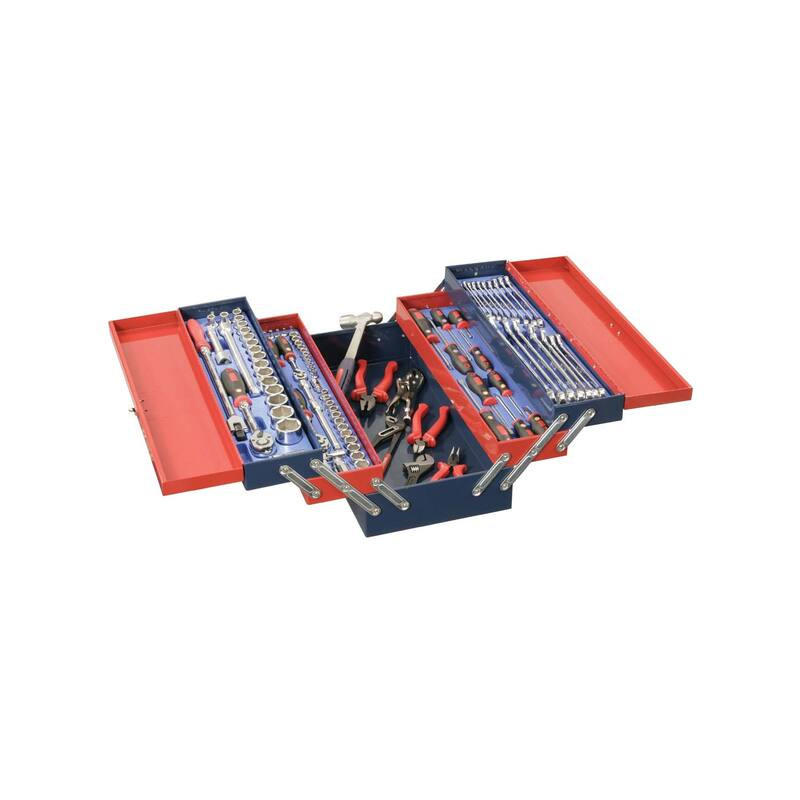 Harmónika kialakítású hordozható, profi szerszámos láda 110 db Genius szerszámmal együtt.