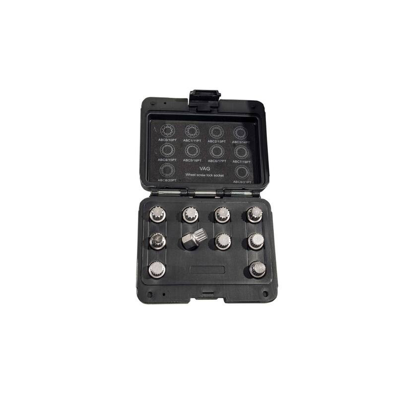 Kerékanya/kerékőr leszedő készlet VAG (Volkswagen, Audi, Skoda, Seat) járművekhez. 10 darabos kiszerelésben erős SCM 440-es acélszerszám