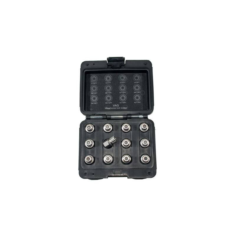 Kerékanya/kerékőr leszedő készlet VAG (Volkswagen, Audi, Skoda, Seat) járművekhez. 12 darabos kiszerelésben erős SCM 440-es acélszerszám