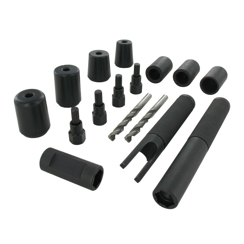 Kifejezetten a bonyolult kerékőrök kulcsnélküli leszerelésére, lefúrására kifejlesztett univerzális, professzionális szerszám készlet.
