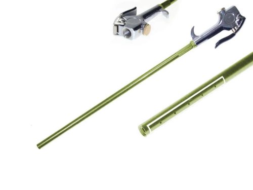 Egyedi kialakítású 1200 mm-es (42") csőr hosszúságú lefújó, tisztító pisztoly, speciális 90 fokos többcsatornás oldalra történő kifúvásos kivitelben.