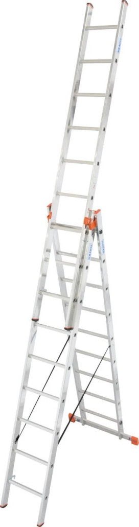 - Háromrészes alumínium sokcélú létra, amely támasztó-, toló- és állólétraként is használható a kitolható létrarésszel.