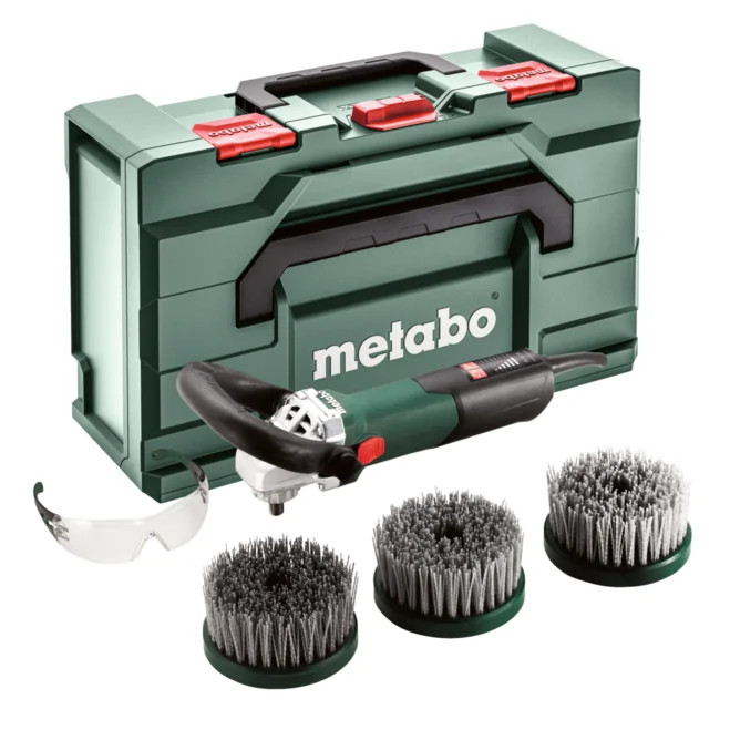 kiegészítő fogantyú, Védőszemüveg, 3 db tányérkefe (130 mm; P46, P60, P80), metaBOX 165 L