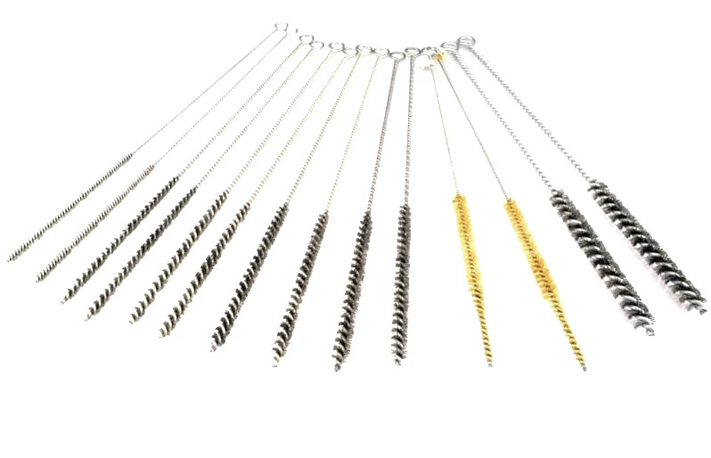 Izzító gyertya furat és porlasztó fészek tisztítására szolgáló különböző méretű acél szálú tisztító drót kefék.