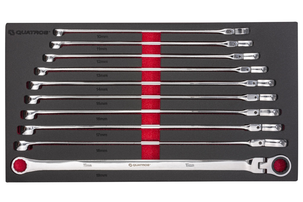 Extra hosszú racsnis, csuklós fejű csillagkulcs készlet 10 részes, 10–19 mm - Quatros