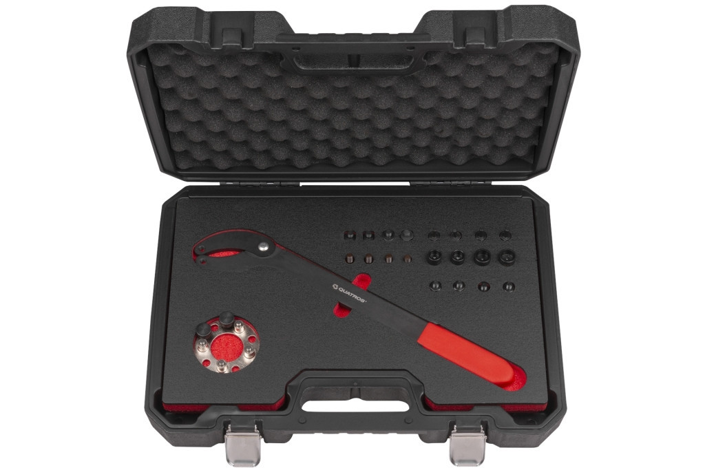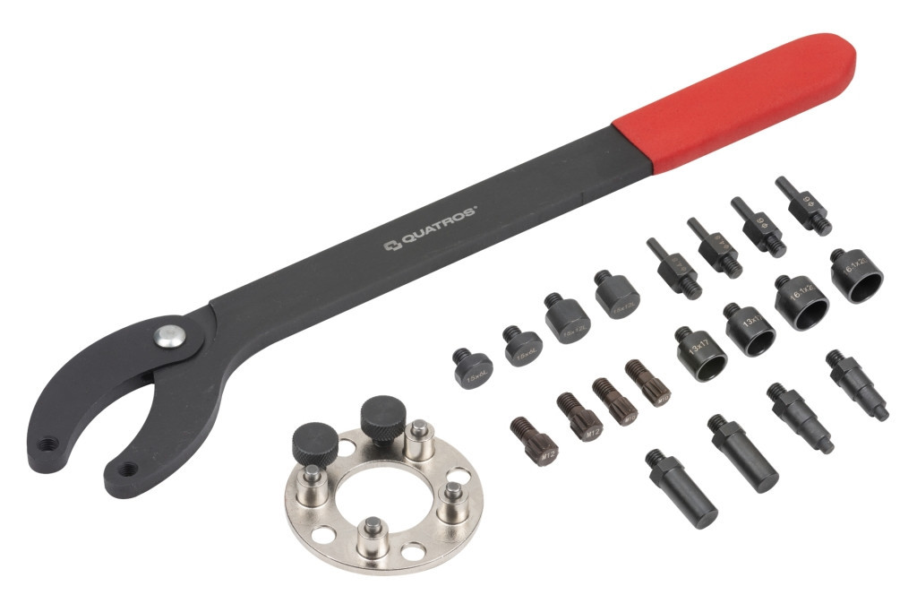 A Quatros QS20601 egy profi szíjtárcsa ellentartó készlet, amely a Volkswagen-csoport járműveinek (VW/Audi) vezérműlánc-kerekének és olajszivattyú-kerék gyors és biztonságos rögzítésére szolgál szerelési munkák során.