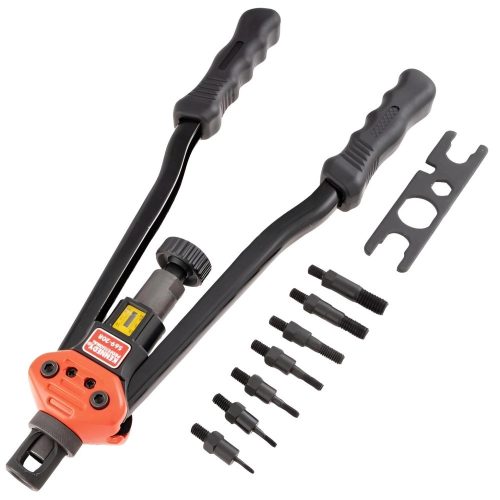 Ergonómikus, puha markolatú fogantyúival a kényelem és a használat közbeni támogatás érdekében ez a nagy teherbírású ipari minőségű szegecsanyák beszúrója ideális professzionális használatra.