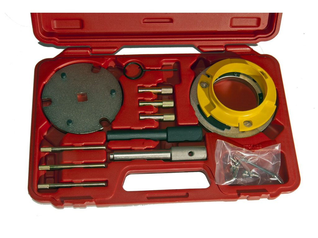 A készlet tartalmaz még vezérlő rögzítő csapokat, főtengely rögzítő csapokat, vezérműtengely beállító szerszámot, vezérműtengely fogaskerék beállító eszközt.