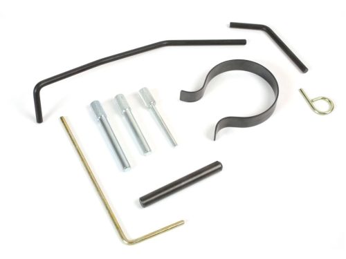 Vezérműszíj szerelő készlet, mely tartalmazza az összes olyan speciális összetevőket mellyel a motor főbb alkatrészei beállításához és időzítéséhez szükségesek.