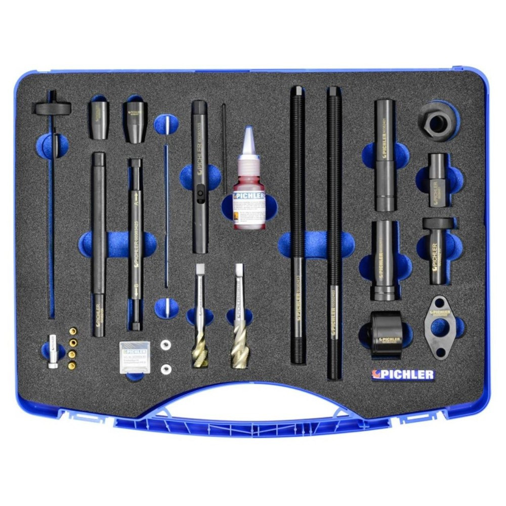 Beleszakadt CRD porlasztó üreges alsó részének a kiszerelő komplett célszerszám készlete.