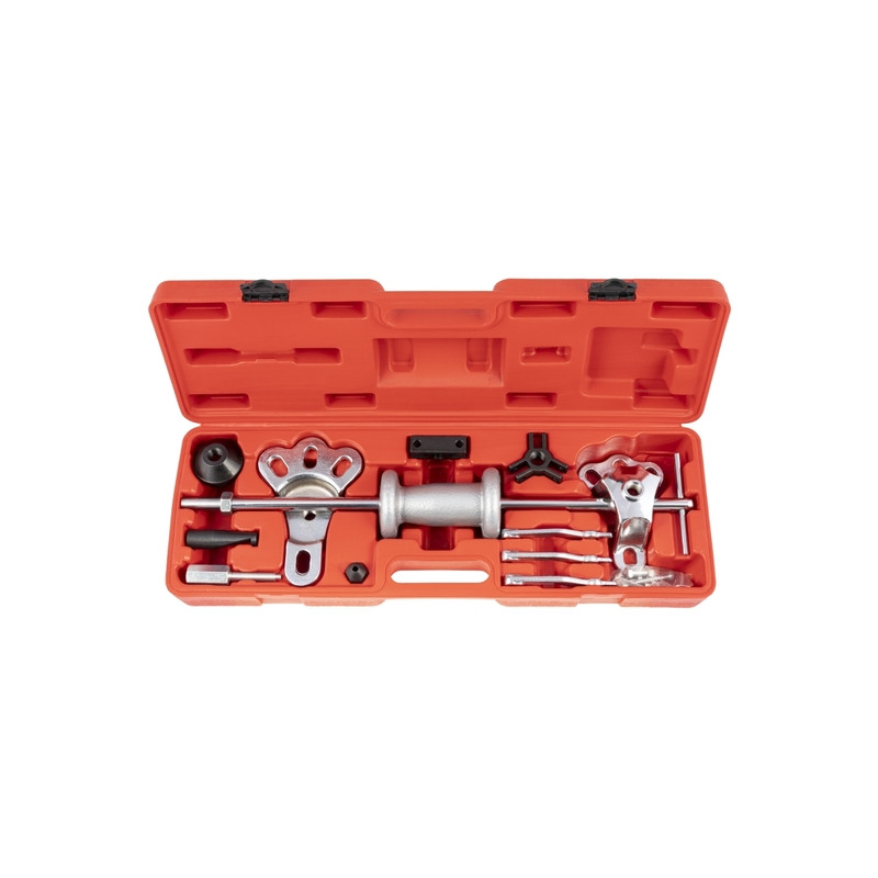 A készlet tartalmaz a csúszókalapács mellett például 2/3 körmös belső/külső csapágylehúzót, 2/3 pontos kerékagylehúzót, húzókampót, és kúpos adaptereket is.